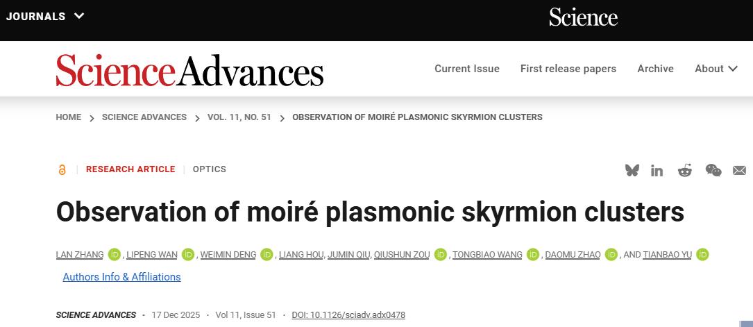 论文链接:Observation of moiré plasmonic skyrmion clusters | Science Advances